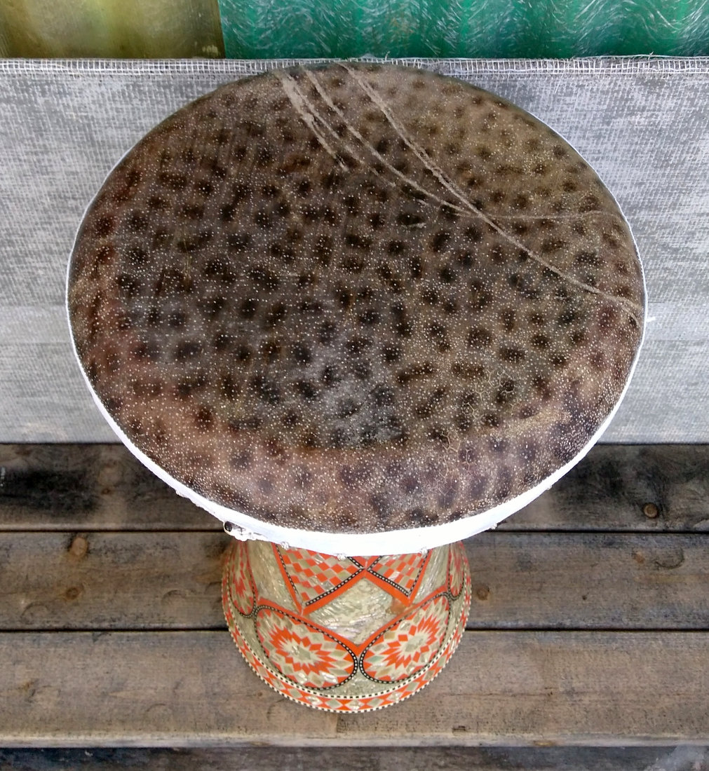 Since we're going through the trouble and expense of replacing the skin, why not replace it with the best skin possible? From our experience, the finest skin to use on doumbeks is Nile River sturgeon.