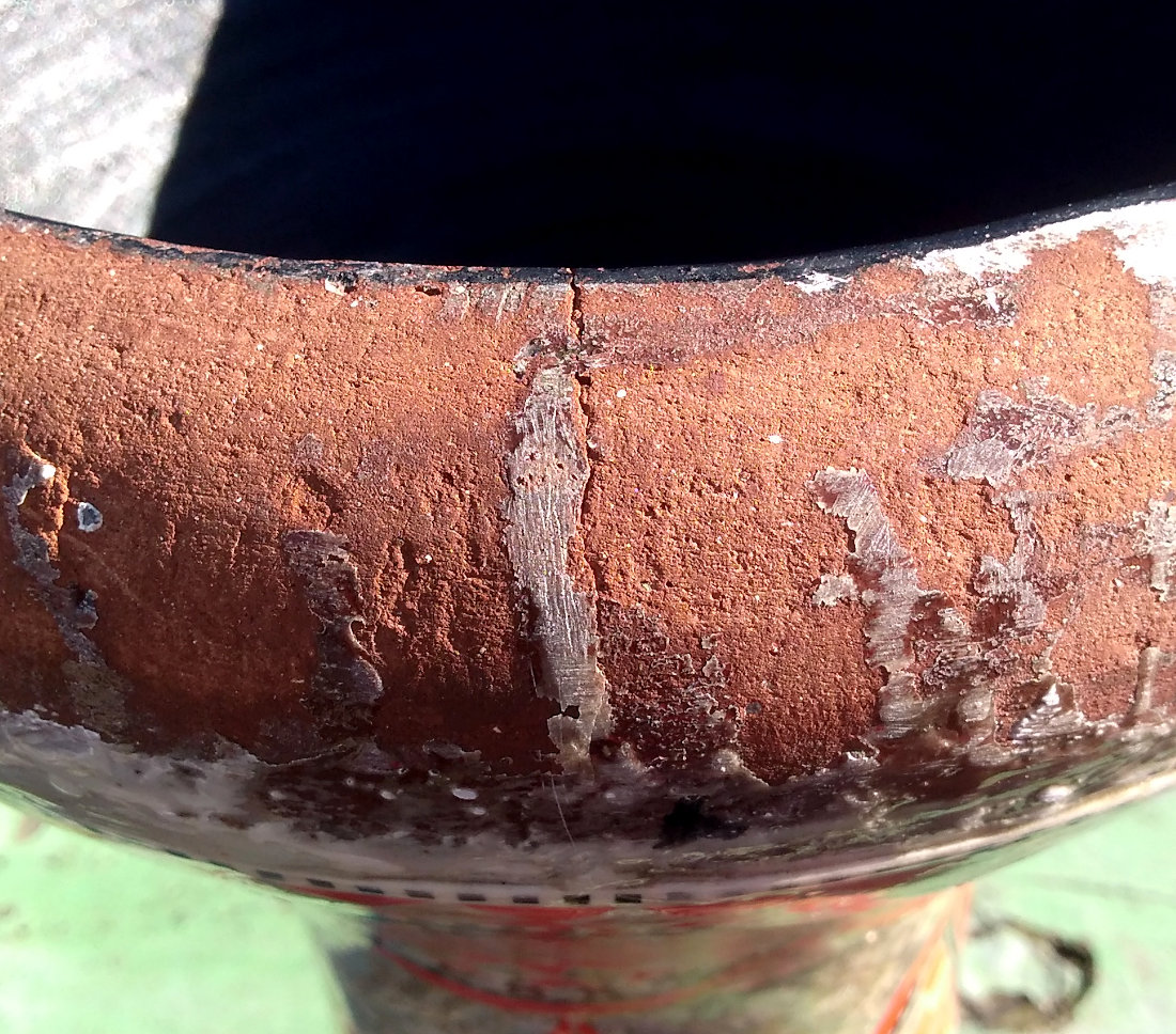 The clay shell had broken at the top but was held together by the skin. This is the damage Ali was aware of.