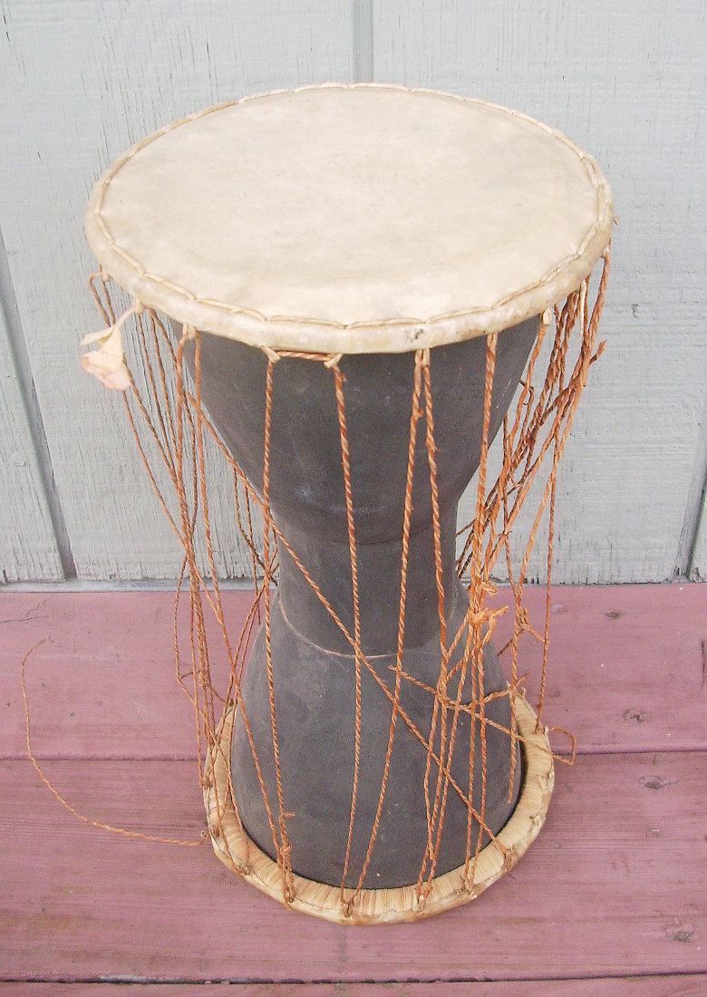 Renees djembek is a fine example of such a drum. The only problem is that the skin has ripped.